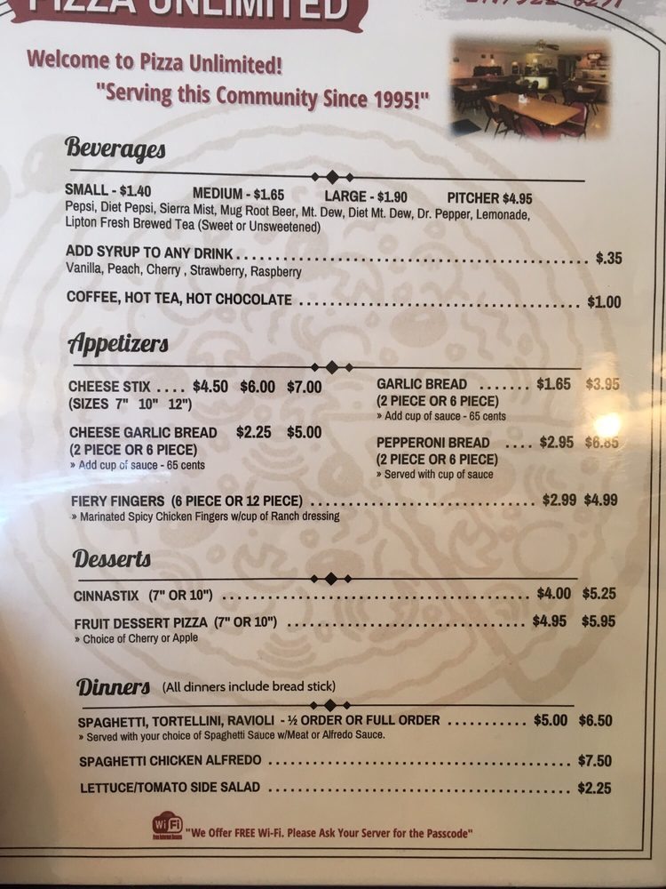 Pizza Unlimited Menu